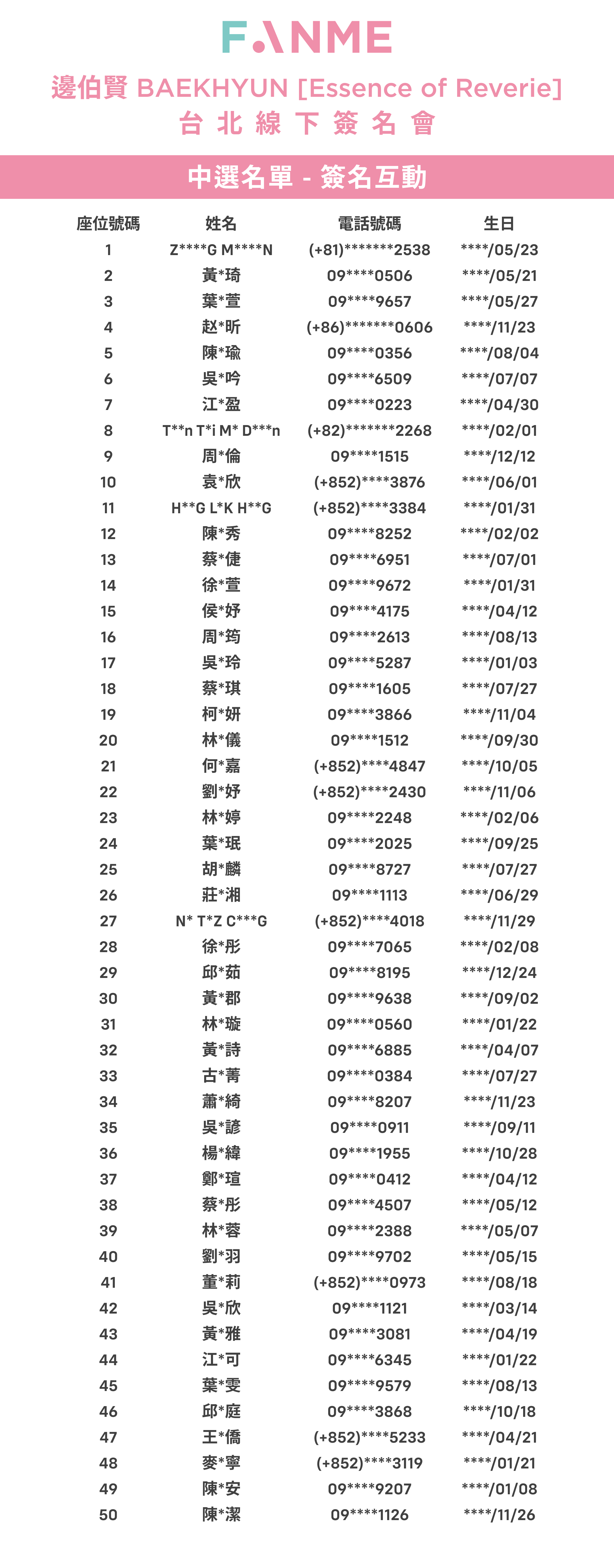 主旨:〔FANME〕2026.01.31 邊伯賢 BAEKHYUN [Essence of Reverie] 台北線下簽名會 中選者通知信
