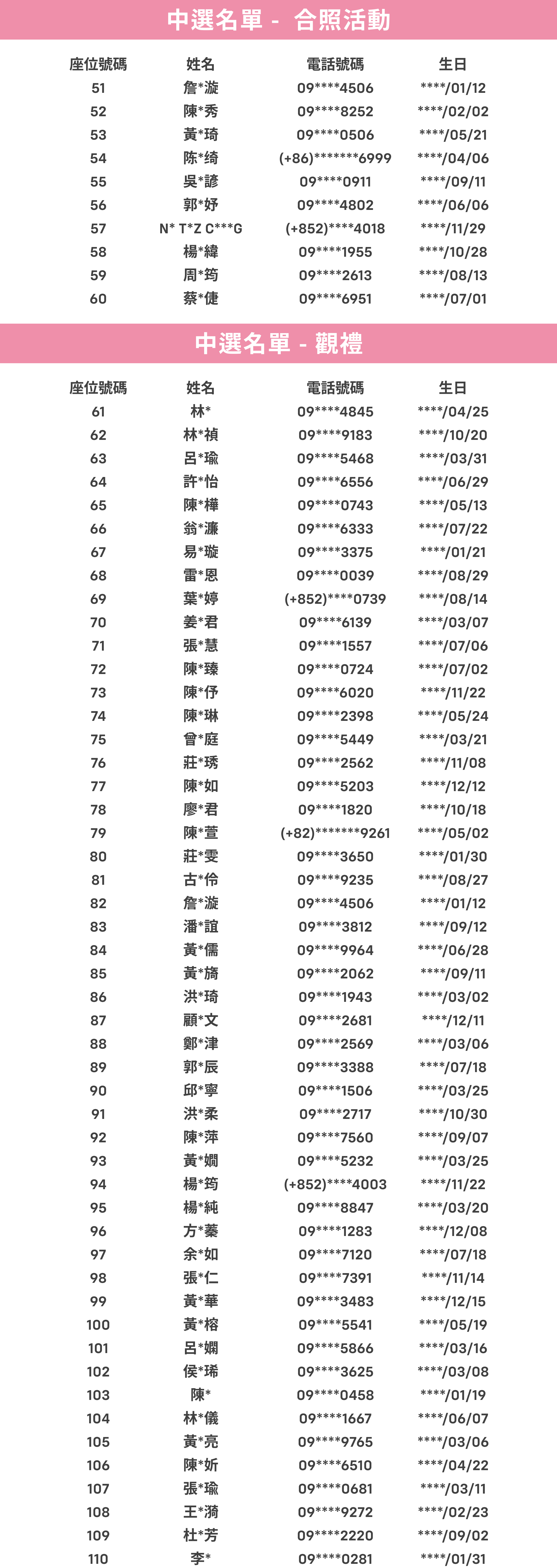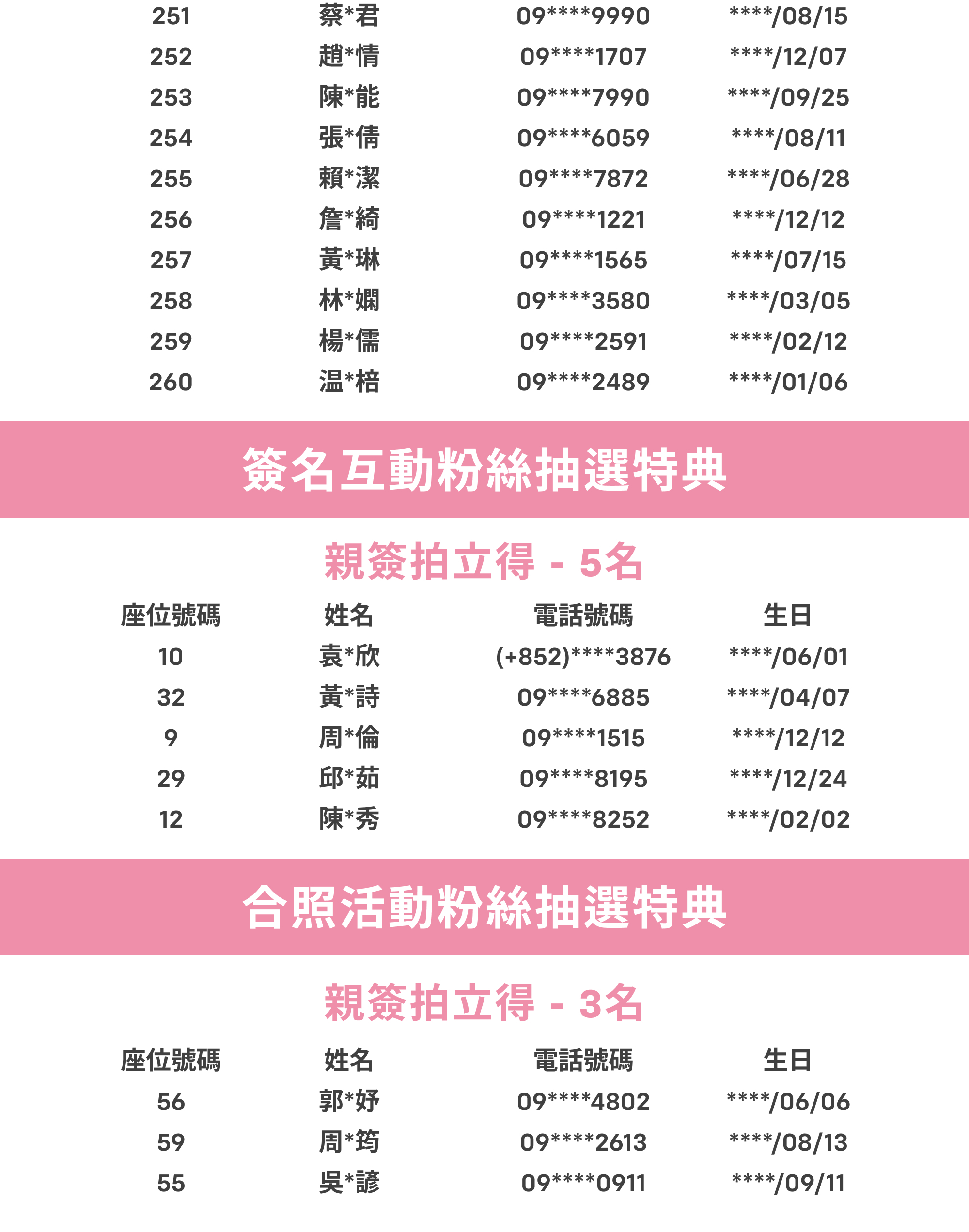 ・入場後請根據中選者名單公布的號碼對號入座,不得調換座位及移動座位。